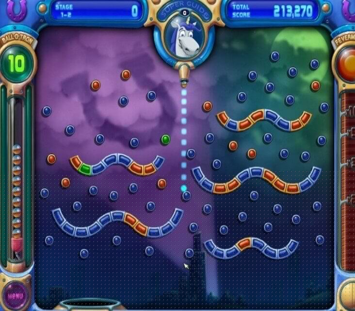 Despite the similarities to the original, Peggle Nights on Mac OS has some peculiarities. Basically, this is the addition of types of shots. Now you can shoot from walls and more. The game takes place not during the day, but in the dark, at night.